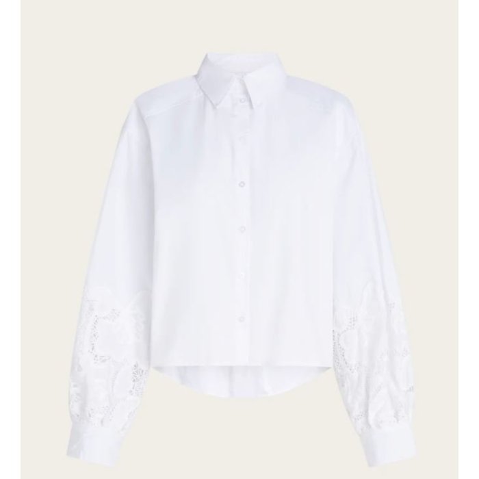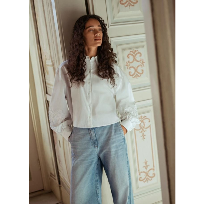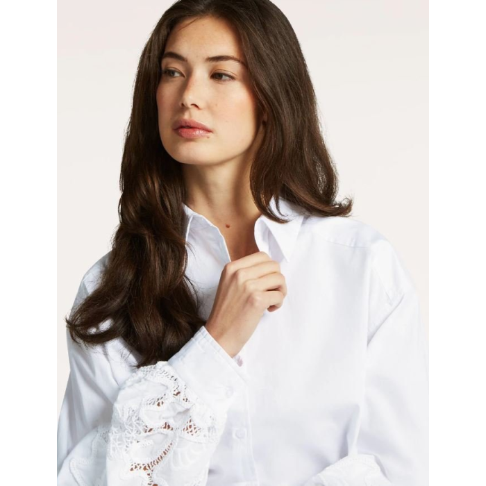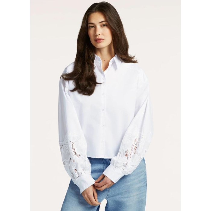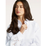 Zaujímavým detailom blúzky je jemná čipka na rukávoch, ktorá jej dodáva ženský a elegantný vzhľad. Má klasické zapínanie na gombíky po celej dĺžke.