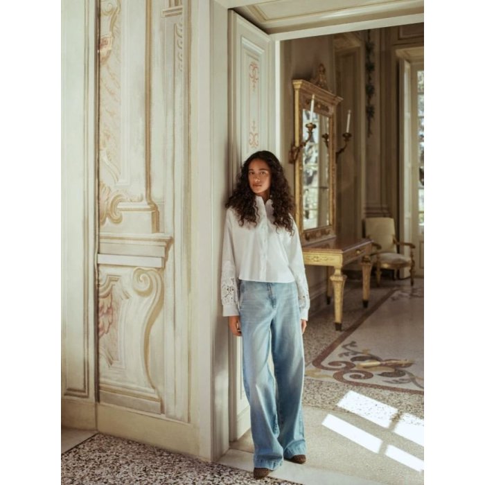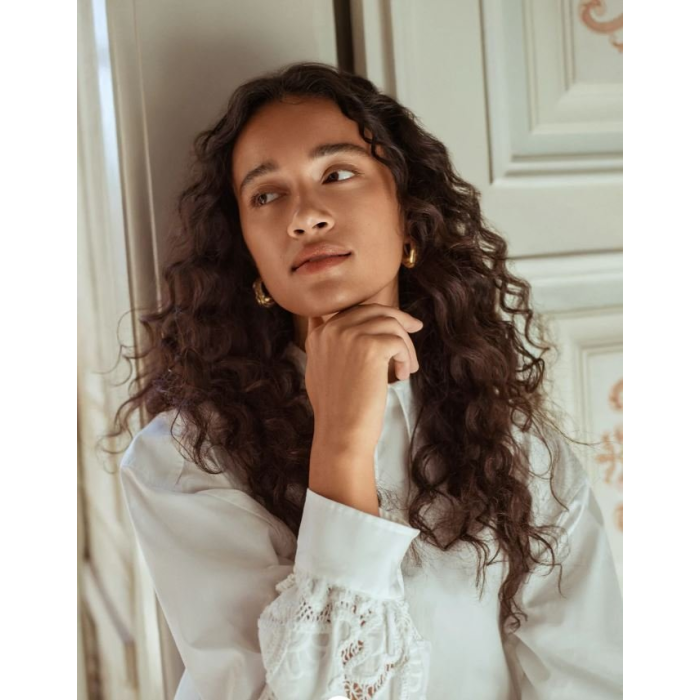 Táto blúzka je ušitá zo 100 % organickej bavlny v poplínovej väzbe. Poplín (anglicky poplin) je typ tkaniny s jemnou, no zároveň pevnou štruktúrou, ktorá je príjemná na dotyk, priedušná a dobre drží tvar, vďaka čomu je ideálna na každodenné nosenie.