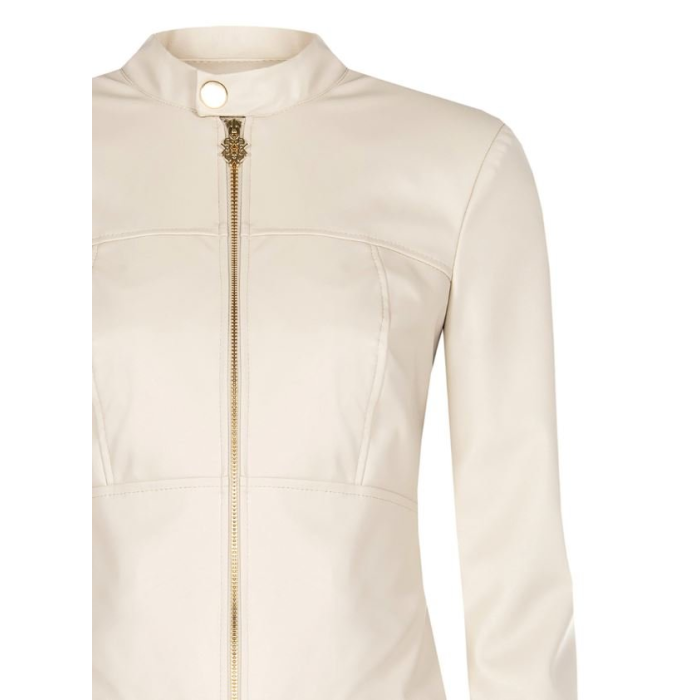 Klasická neutrálna farba sa hodí do každého šatníka, a preto prichádzame s bundou od značky Rinascimento z imitácie kože v krémovej farbe. Zapínanie je na zips a patent. Je podšitá. Je to klasický a nadčasový model vhodný na šaty, k nohaviciam, šortkám, sukni.