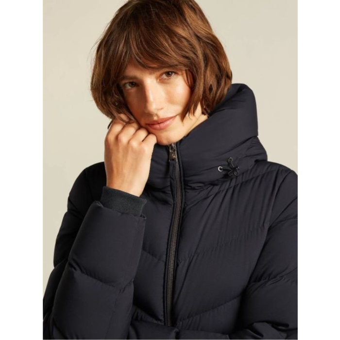Tento dámsky zimný kabát značky Beaumont je vyrobený s výplňou z kačacieho peria, vďaka čomu je ľahký, ale zároveň veľmi teplý. Má dlhší strih po stehná a prešívanie v horizontálnych pruhoch, ktoré mu dodáva pekne tvarovanú siluetu. Čierna farba pôsobí elegantne a ľahko sa kombinuje s rôznymi outfitmi. Kabát sa zapína na dvojcestný zips po celej dĺžke a je vybavený kapucňou s vyšším golierom, ktorý spoľahlivo chráni krk pred vetrom a chladom. Jeho minimalistický dizajn spája funkčnosť s eleganciou, takže je vhodný nielen do mesta, ale aj na každodenné nosenie.