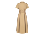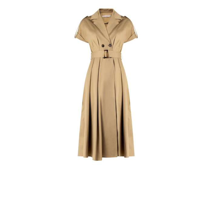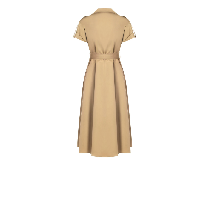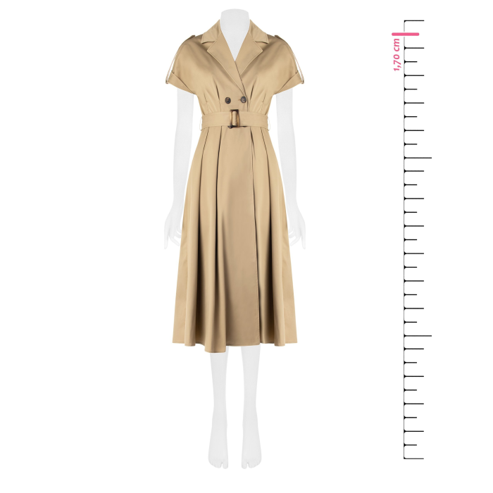 Tieto šaty sú stelesnením elegancie s ležérnym nádychom – ženské, pohodlné a nesmierne lichotivé. Strih do A nádherne vyváži proporcie, zatiaľ čo opasok zvýrazní pás hneď pod prsiami a vytvorí krásnu siluetu. V-čkový výstrih opticky predĺži krk a dodá jemný, elegantný vzhľad. Dvojradové zapínanie a klopy pôsobia sofistikovane, no stále veľmi moderne. Šaty sú ideálne pre postavu typu jablko, hruška, presýpacie hodiny, obdlžník a vďaka voľnejšej sukni vytvoria efekt presýpacích hodín.