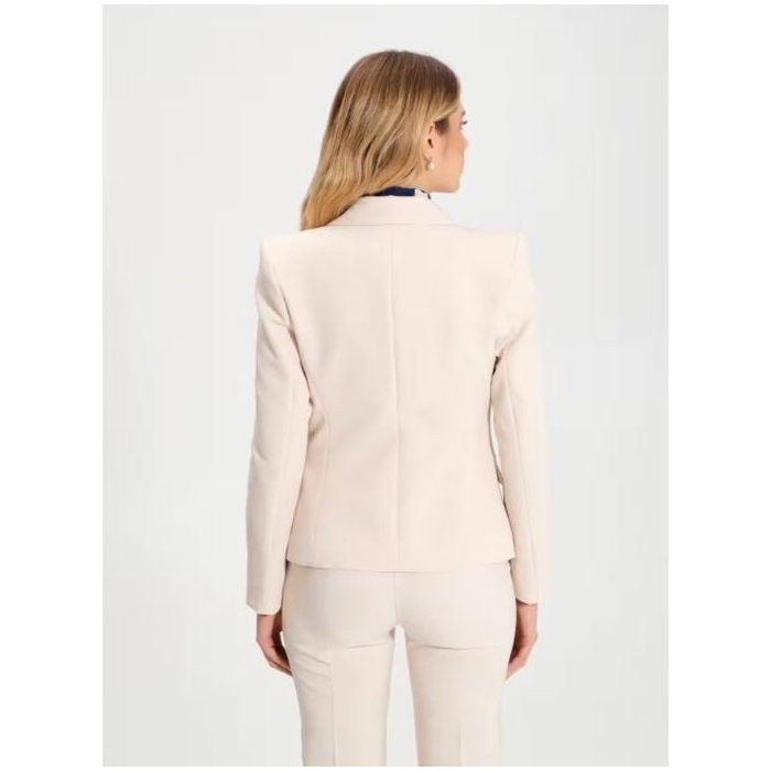 Nie každá žena potrebuje nosiť do práce elegantný outfit, do ktorého určite patrí kvalitné, ženské sako. Ale mať v šatníku sako, ktoré je nadčasové s dvojradovým zapínaním na gombíky s krátkym strihom do pásu, je základ. Využiť ho môžte na milión príležitostí a to do práce, na šaty ako "prehoz", ku rifliam a bielemu klasickému tričku alebo k sukni ak vás čaká nejaká rodinná oslava či stretnutie. Sako má v oblasti ramien vypchávky a je šité naozaj tak, aby podmanil krásu každej ženy.