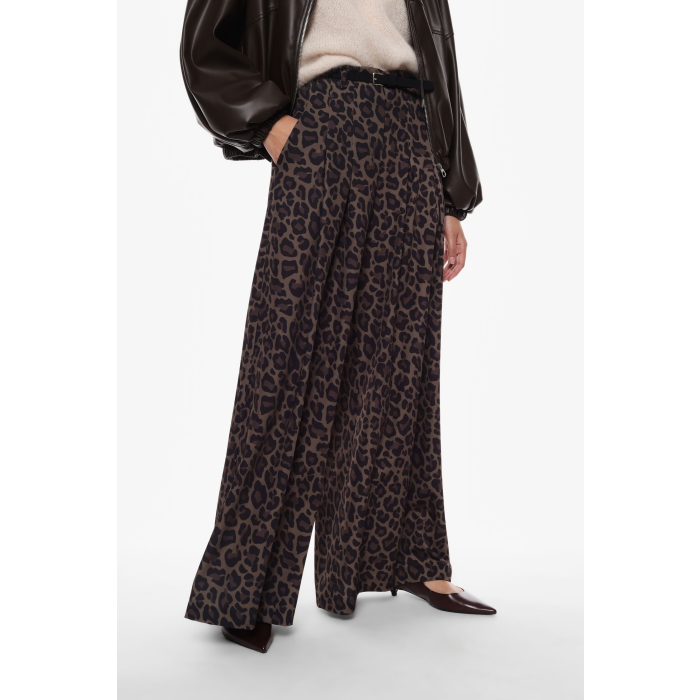 Široké nohavice, ktoré vás ohúria svojim sofistikovaným štýlom. Vysoký pás v kombinácii so širokými nohavicami vám predľži postavu. Výrazná potlač a elegantný strih z nich robia ideálnu voľbu pre tých, ktorí hľadajú osobitý a jedinečný štýl, a dodajú vášmu mestskému šatníku nádych originality.