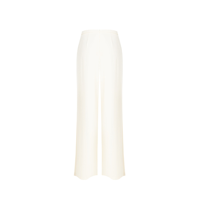 Nohavice od značky Rinascimento do elegantných, ale aj ležérnych outfitov.. Jednoduchý model nohavíc, ktoré majú široký strih a sú do vysokého pásu. Ich príjemná, jemná smotanová farba je ľahko kombinovateľná s ostatnými farbami.Nohavice majú zapínanie na zips na zadnej strane.