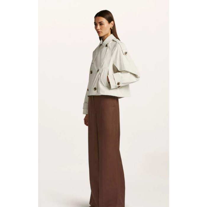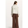 Rukávy sú plne podšité, zatiaľ čo telo bundy má polovičnú podšívku s bodkovaným vzorom. Predná časť je riešená dvojradovým zapínaním. Na prednom diele sa nachádzajú vrecká s chlopňou a bočným vstupom. Rukávy je možné upraviť pomocou pásika. Spodná časť má voľnejší strih, ktorý sa dá stiahnuť a prispôsobiť pomocou šnúrky.